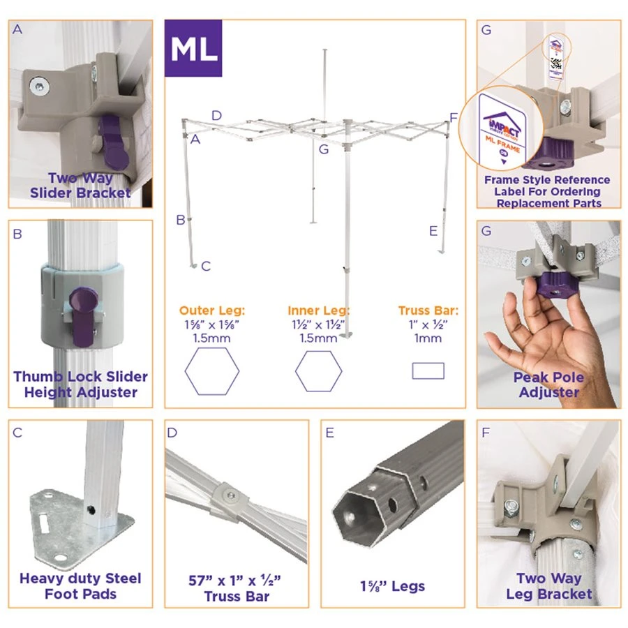 - Nylon/fiberglass double sided bracket components for strength and stability of the canopy frame