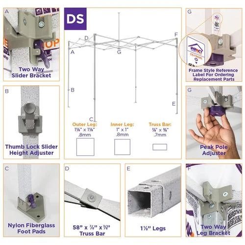 - Includes Frame, Top, Roller Bag, and Rope & Spike kit