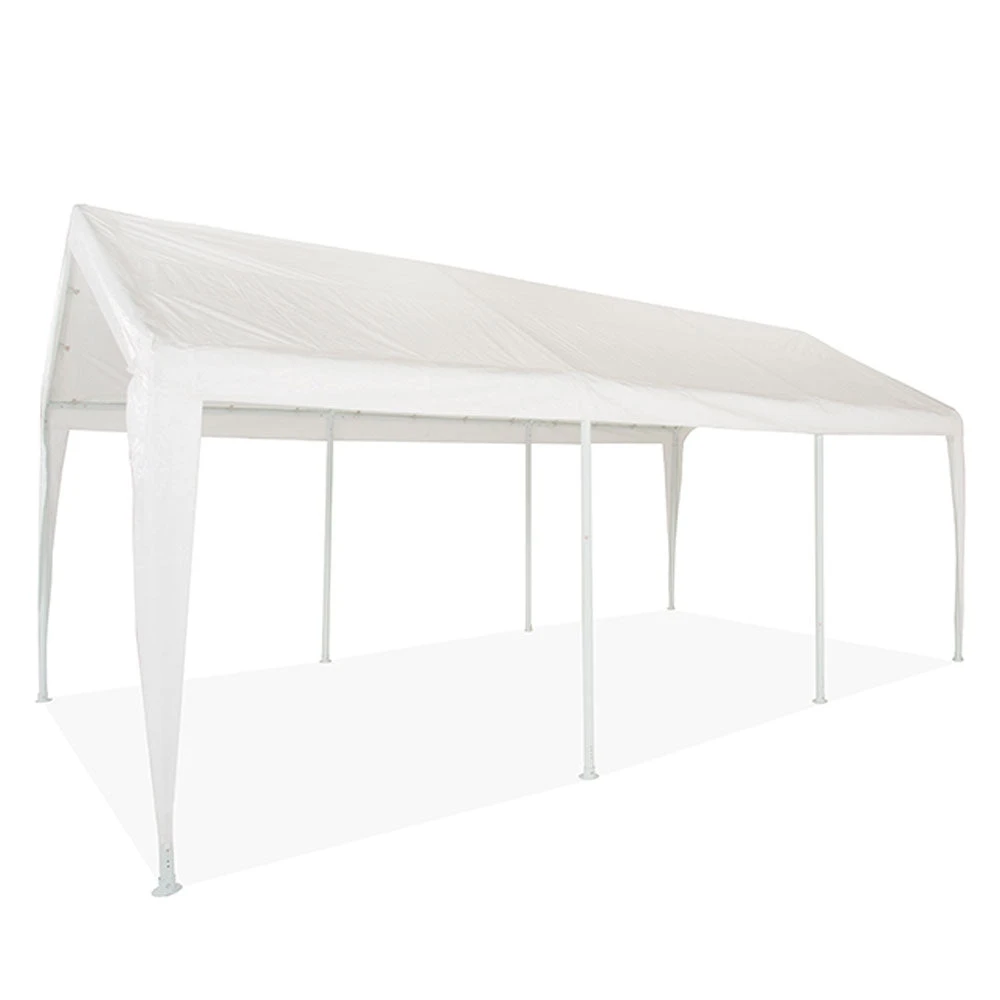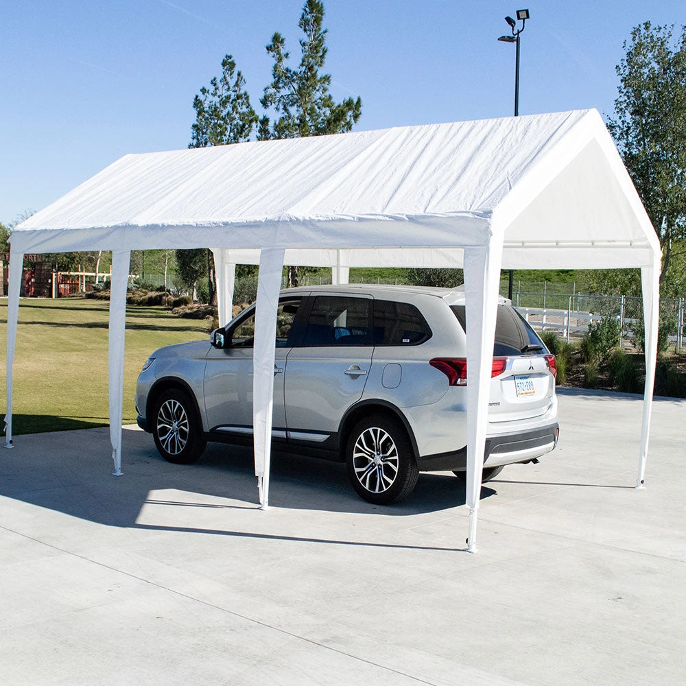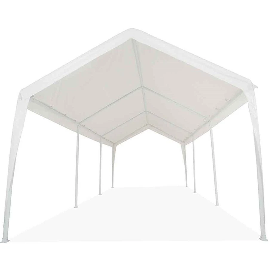 The Impact Canopy is a quick and easy solution for an outdoor shaded space, vendor booth, or carport. This 8 leg steel frame is constructed from 34mm powder coated steel, and 170 Gram PE fitted cover. No tools are required for assembly.