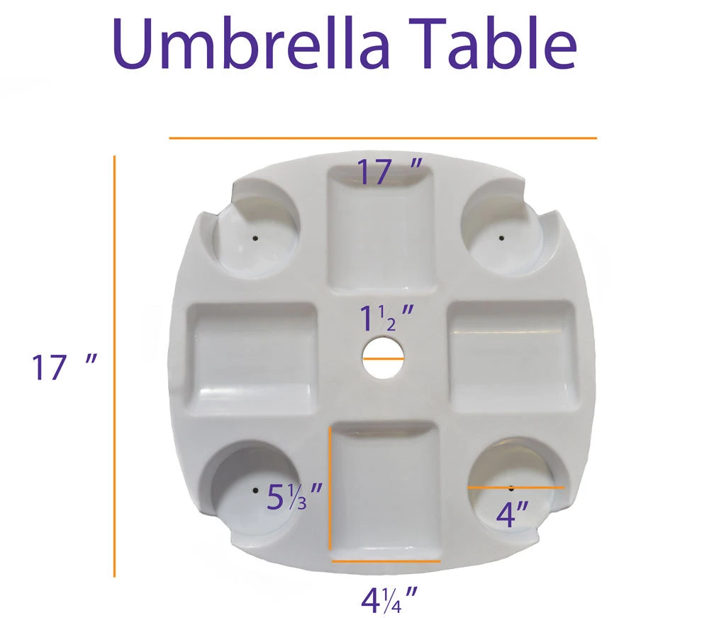 - Fits umbrella poles up to 1 1/2″ in diameter