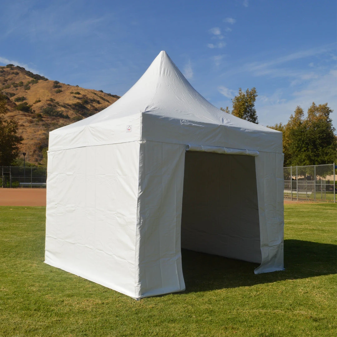 - Includes: Aluminum Frame, PVC Top, 3 PVC solid walls, 1 PVC wall with doorway, removable transport wheels, rope and spike kit