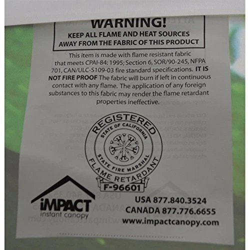 - Canopy top meets ULCS 109, CPAI 84 & NFPA 701 fire codes – Fire Certificate