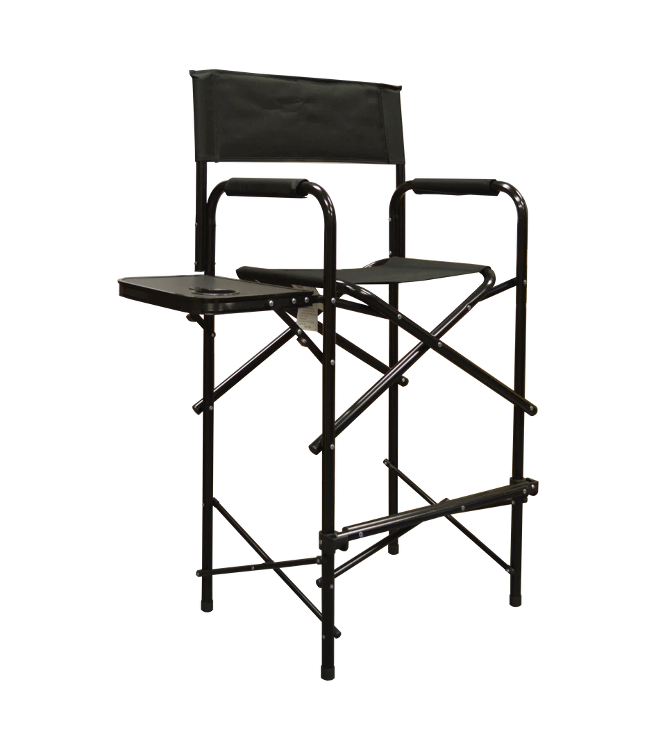 Bring comfort and style to your office or event with a pair of custom Director’s Chairs with an attached folding side table. Available in tall (counter height) and featuring double crisscross supports with a folding design for easy storage and transport.
